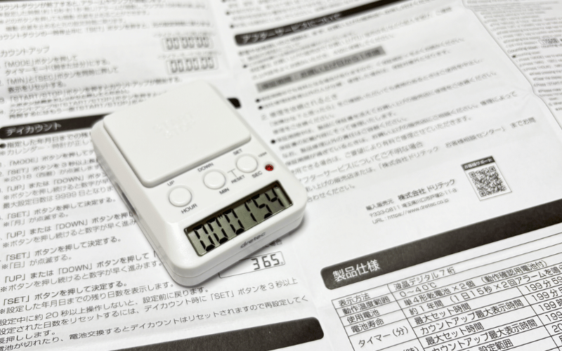早打ちのトレーニングでは容易かつ正確に時間計測を行えることがとても大切です。その意味でSTART/STOPボタンに気を取られずトレーニングに集中できる学習タイマーはとても良いです。全くのおまけ機能ですが、試験日までの日数を表示してくれるデイカウントも便利かもしれません。